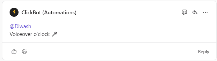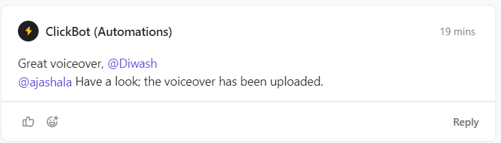 Ensure a comment is added in the comment section by the Chatbot. All voiceover voiceover related conversations should take place within this comment as a thread.