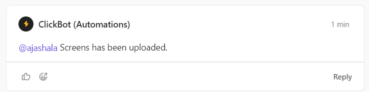 Ensure a comment is added in the comment section by the Chatbot. All screen-related conversations should take place within this comment as a thread.