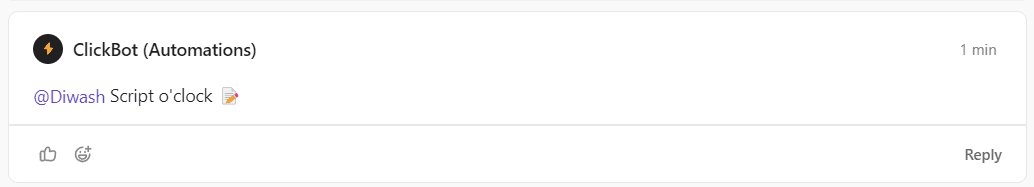 Ensure a comment is added in the comment section by the Chatbot. All script-related conversations should take place within this comment as a thread.