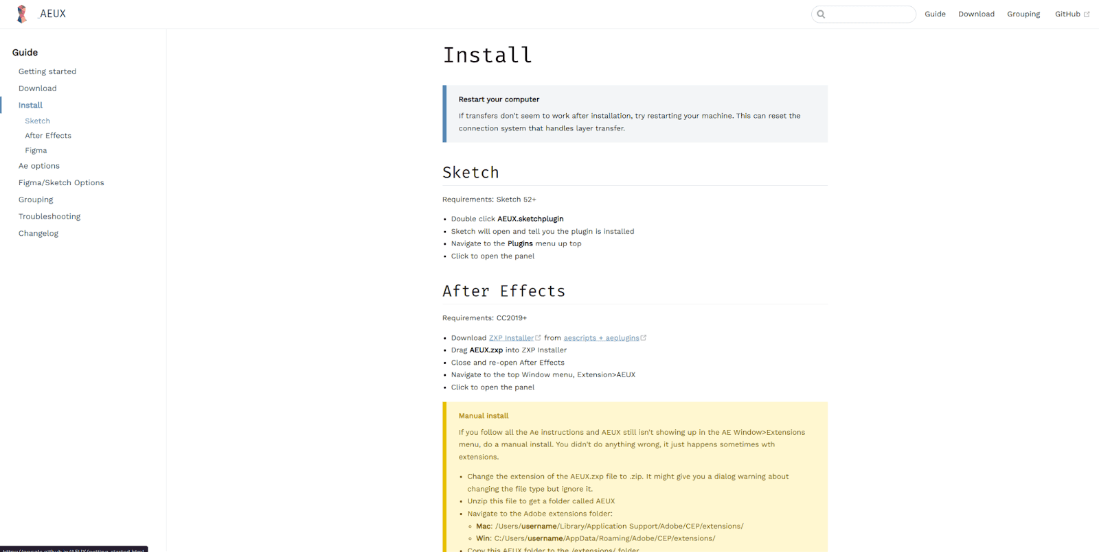 https://www.youtube.com/watch?v=7u77JmnqnUI (Link to AEUX installation video)