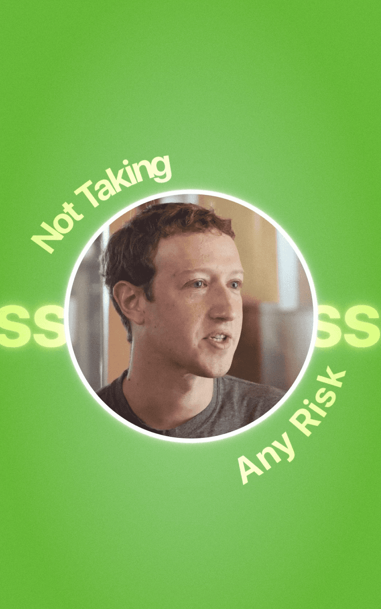 This project is a short, attention-grabbing reel built from existing interview clips of Mark Zuckerberg discussing the theme of taking no risk. The footage was recontextualized for social media by combining video clips, kinetic typography, and motion graphics to produce a premium, polished reel that aligns with current trending aesthetics.